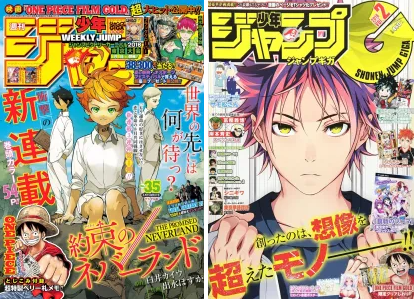 Mangás de destaque: One Piece, Naruto, Dragon Ball, Bleach, Slam Dunk, Death Note, Kochikame, Hunter x Hunter, Gintama, Yu Yu Hakusho, Nisekoi, I”s, Hokuto no Ken, Dr Slump, Yu-Gi-Oh, Haikyuu, My Hero Academia, Assassination Classroom, Rurouni Kenshin, Saint Seiya, Captain Tsubasa, The Prince of Tennis, Kinnikuman, Sket Dance, Black Clover, Shokugeki no Soma, Saiki Kusuo no Psi-nan, Mazinger Z, Cobra, City Hunter, Rokudenashi Blues, Rookies, Shaman King, Hikaru no Go, Eyeshield 21, Kuroko no Basket, Katekyo Hitman Reborn, To Love Ru, Bakuman, Toriko