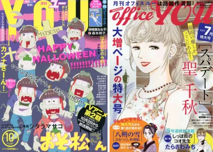 Mangás de destaque: Osomatsu-san, Gokusen, Real Clothes, Koudai-ke no Hitobito, Dame na Watashi ni Koishite Kudasai, Synchro Onchi